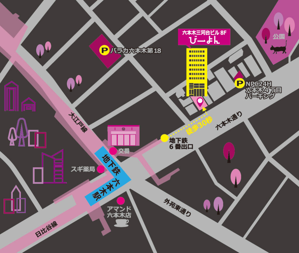 「六本木駅」6番出口より徒歩30秒